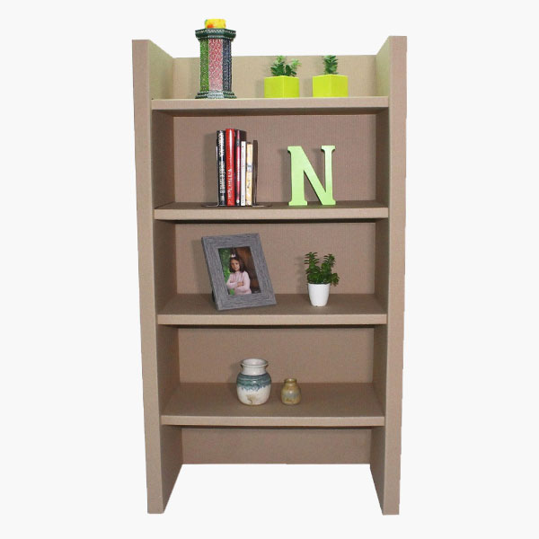 Estantería multifuncional en cartón kraft, ideal para exhibición, 4 bandejas de carga. Muy resistente y liviana.